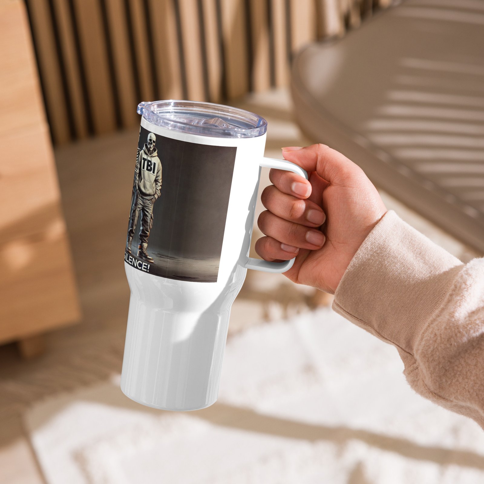 Travel mug with a handle
