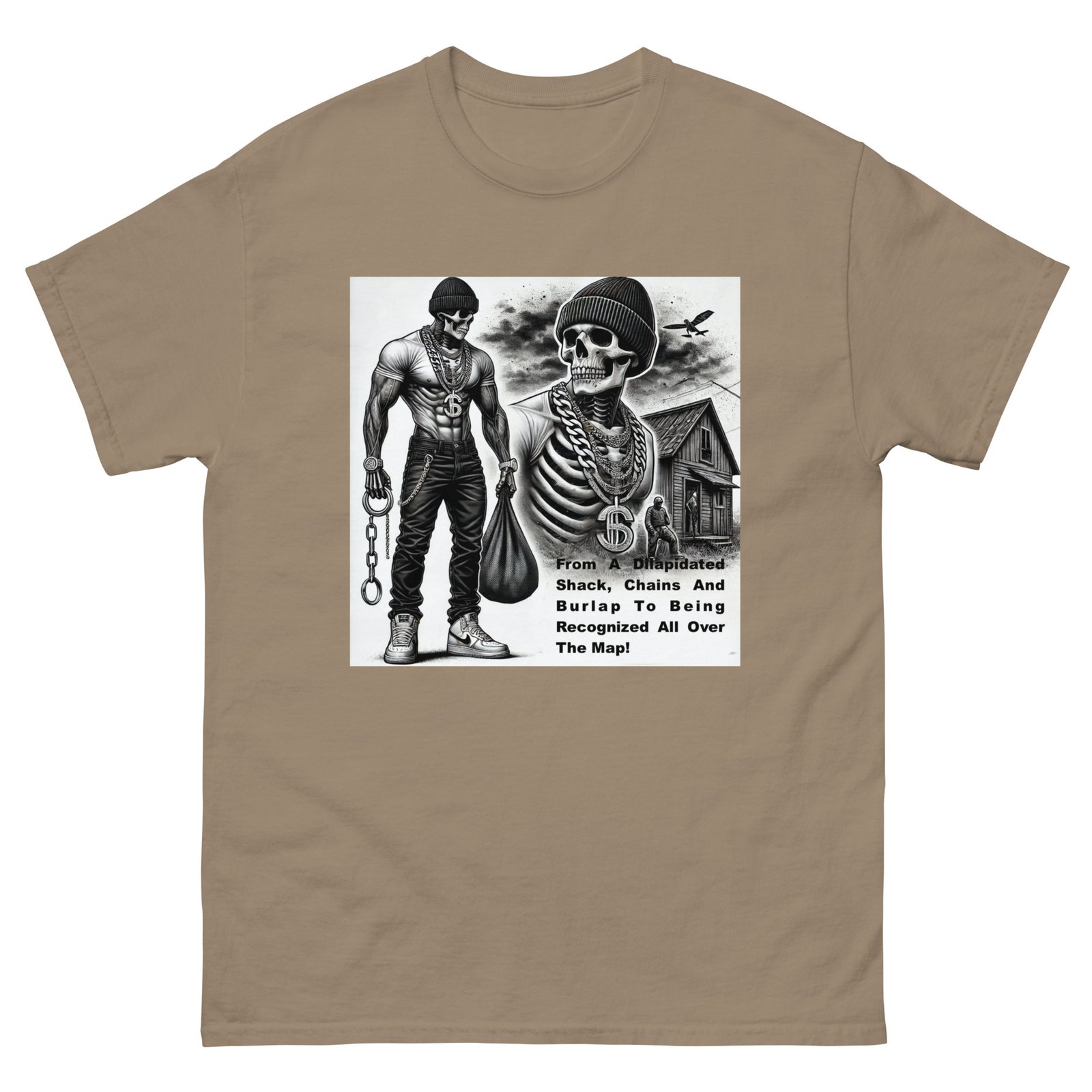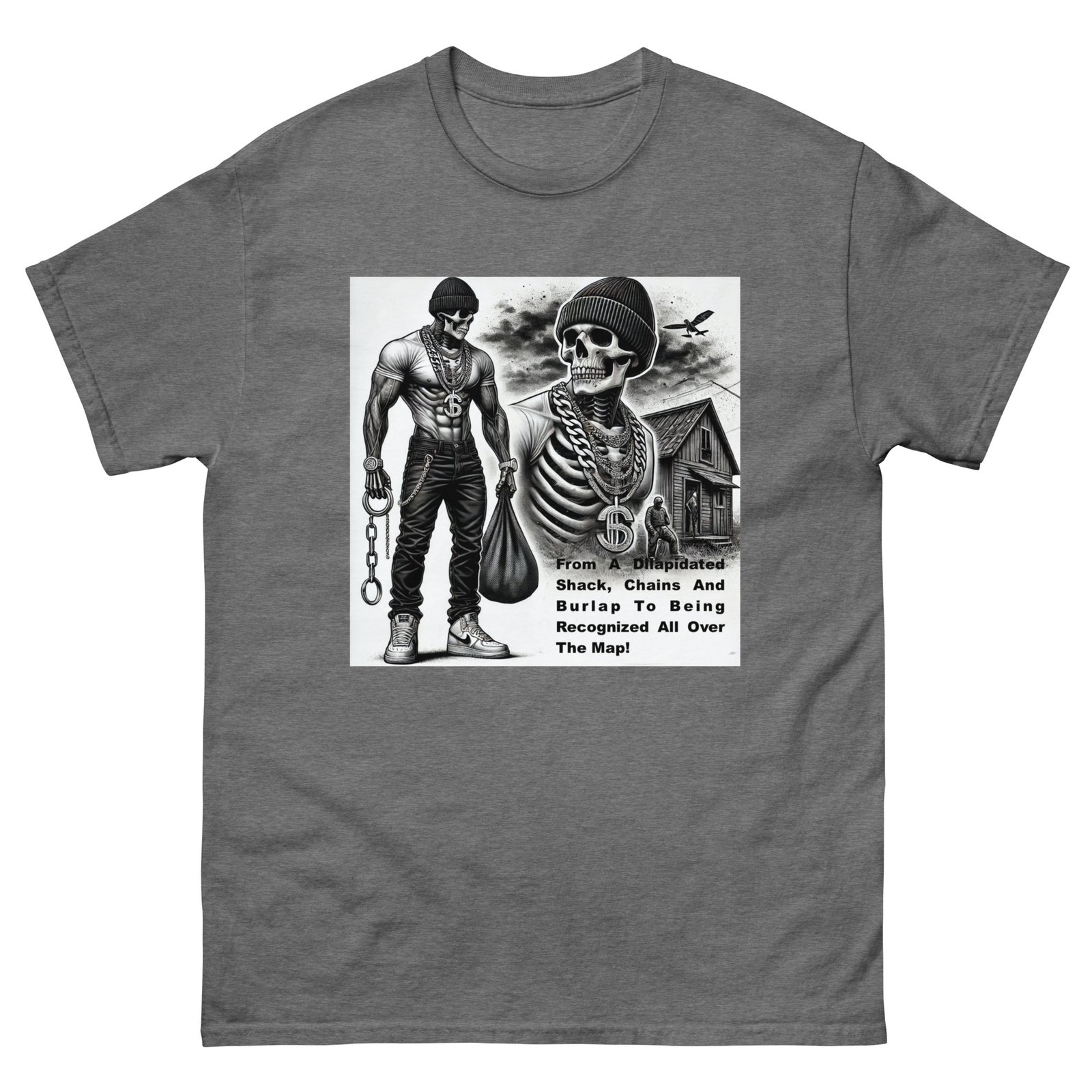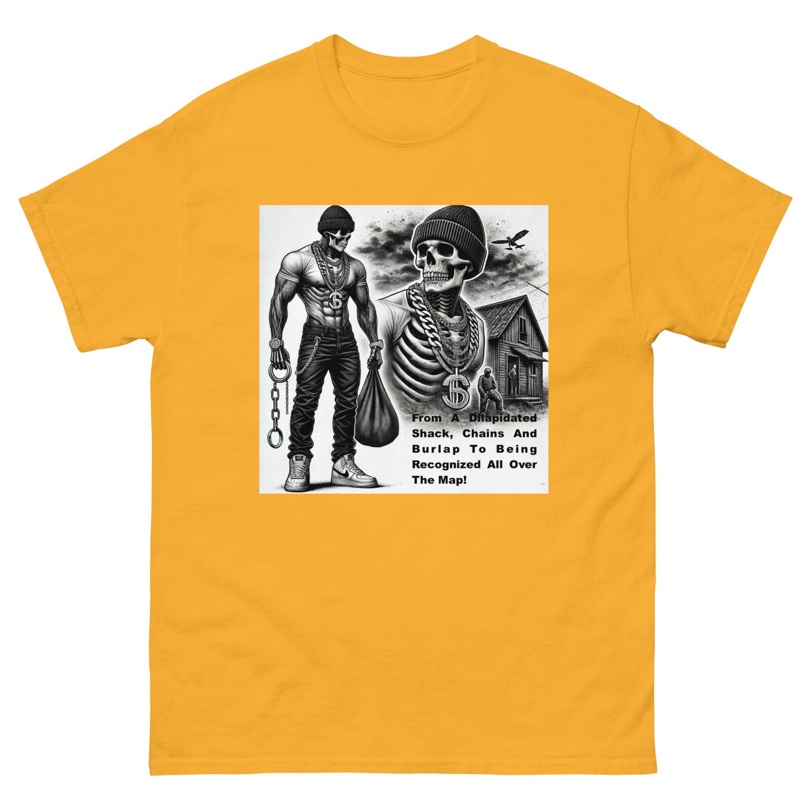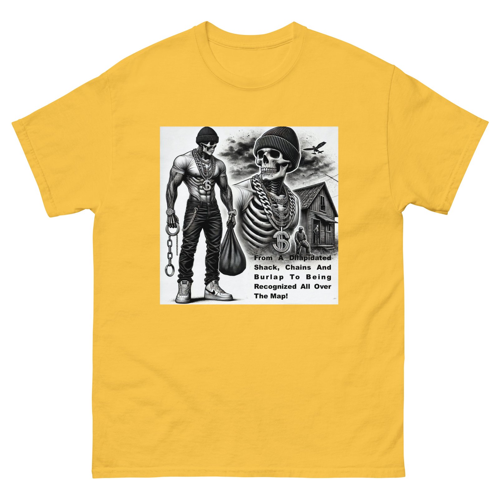 The Gildan 5000 Classic Tee gives a structured look that elevates the basic t-shirt. Its sturdy cotton fabric keeps edges crisp, holds shape through repeated washes, and layers perfectly for streetwear looks. Add your design for a long-lasting tee that feels timeless and chic. 100% cotton. Sport Grey is 90% cotton, 10% polyester. Ash Grey is 99% cotton, 1% polyester. Heather colors are 50% cotton, 50% polyester. Fabric weight: 5. 0–5. 3 oz/yd² (170–180 g/m²). Pre-shrunk jersey knit. Open-end yarn. Tubular construction. Taped neck and shoulders. Double seam at sleeves and bottom hem. Tear-away tag. Blank product sourced from Honduras, Nicaragua, Haiti, Dominican Republic, Bangladesh, and Mexico. Disclaimers: . Due to the fabric properties, the White color variant may appear off-white rather than bright white. Dark color speckles throughout the fabric are expected for the color Natural. Important: The supplier of this product is switching to a new single collar topstitch, so you might receive a mixed stock of both single and double topstitch shirts for some time. This product is made on demand. No minimums.