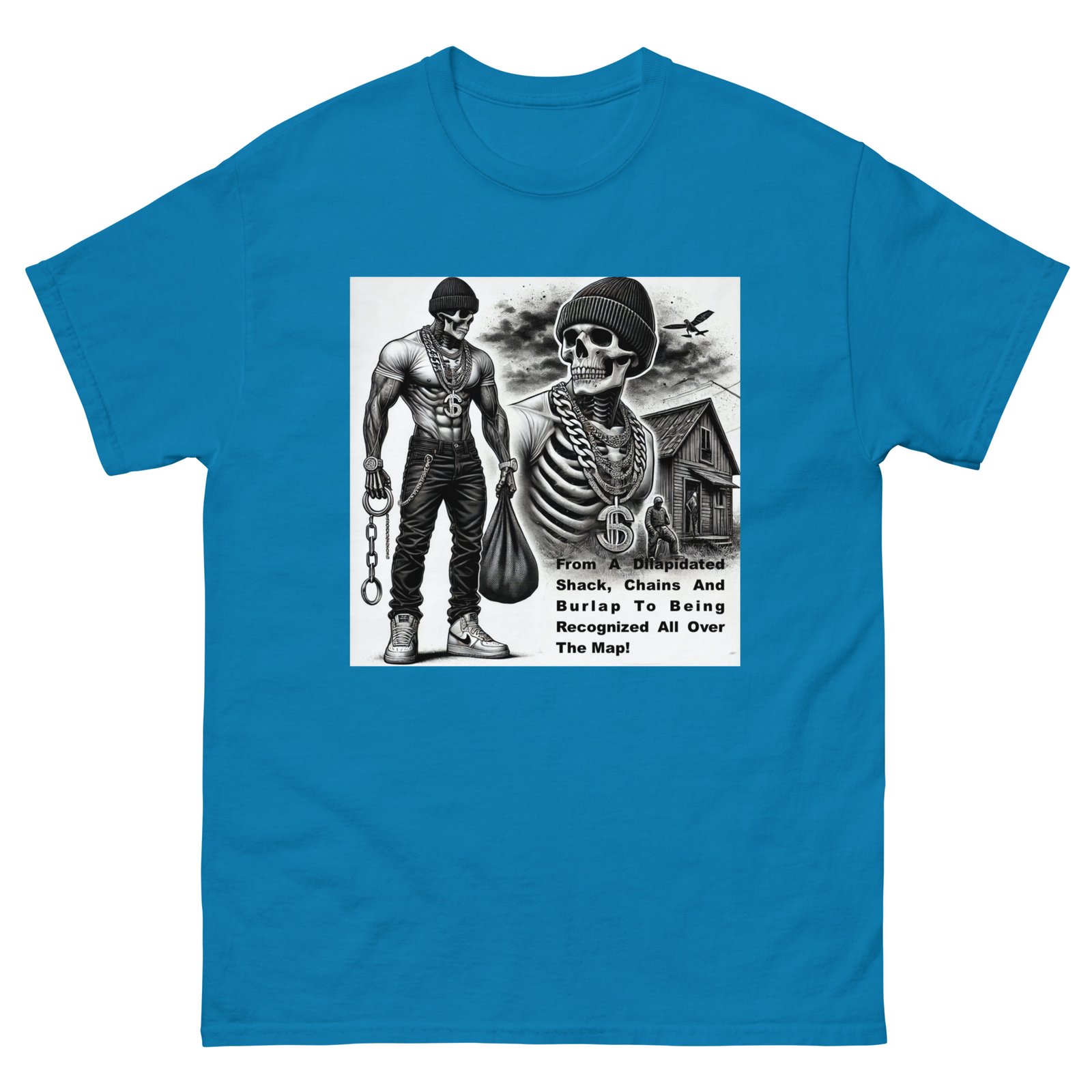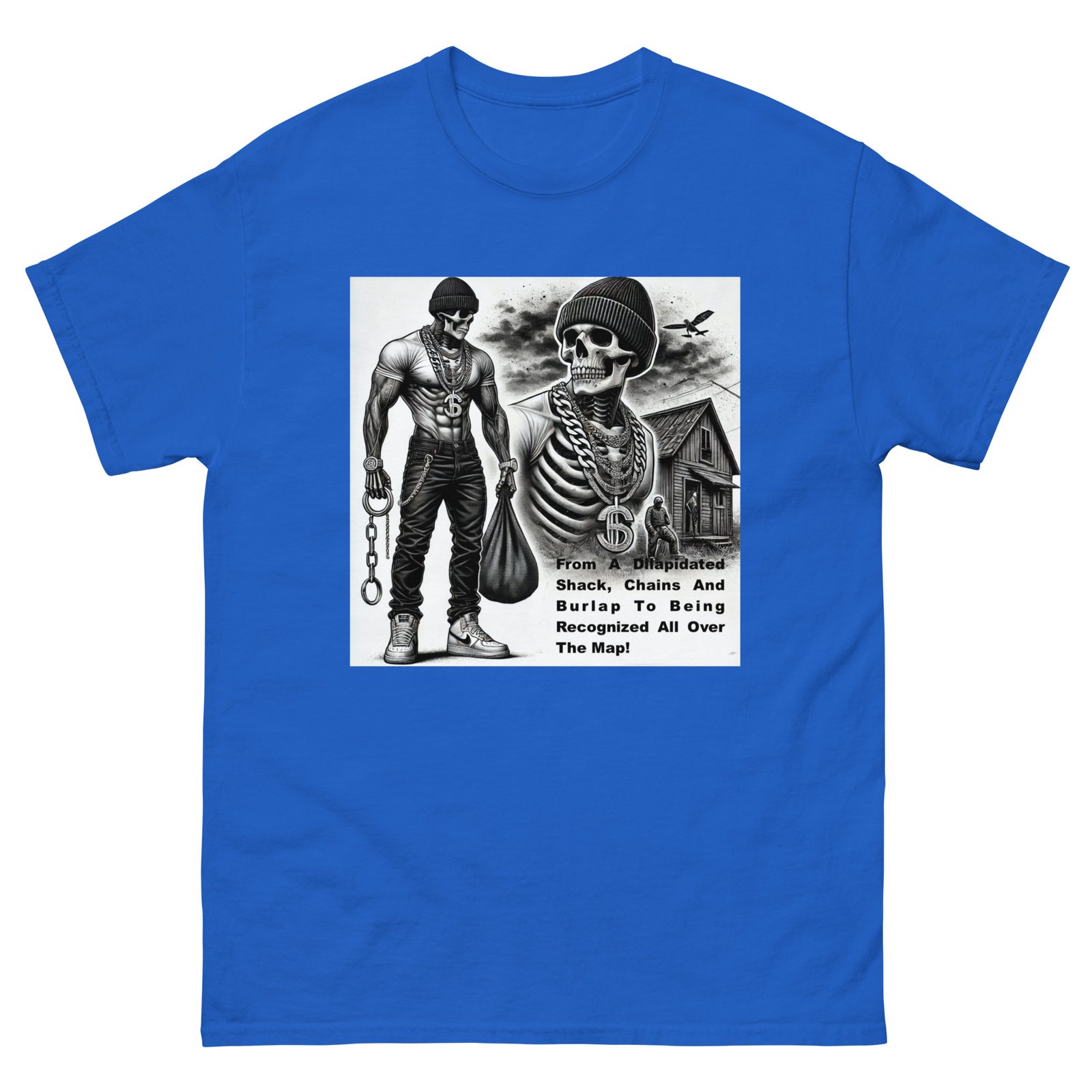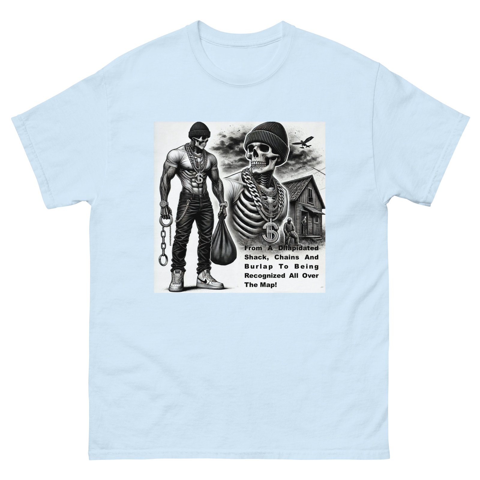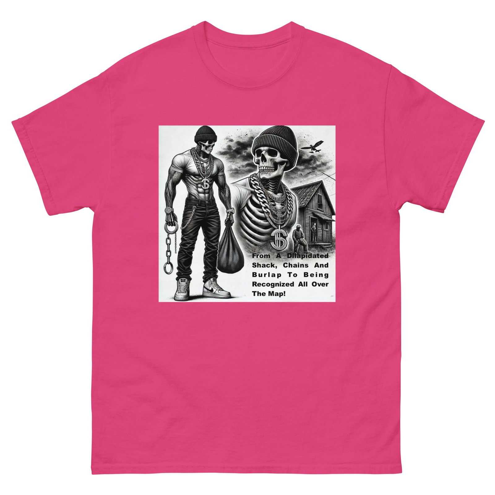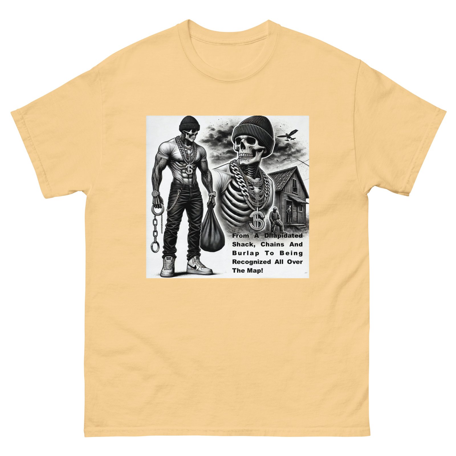 The Gildan 5000 Classic Tee gives a structured look that elevates the basic t-shirt. Its sturdy cotton fabric keeps edges crisp, holds shape through repeated washes, and layers perfectly for streetwear looks. Add your design for a long-lasting tee that feels timeless and chic. 100% cotton. Sport Grey is 90% cotton, 10% polyester. Ash Grey is 99% cotton, 1% polyester. Heather colors are 50% cotton, 50% polyester. Fabric weight: 5. 0–5. 3 oz/yd² (170–180 g/m²). Pre-shrunk jersey knit. Open-end yarn. Tubular construction. Taped neck and shoulders. Double seam at sleeves and bottom hem. Tear-away tag. Blank product sourced from Honduras, Nicaragua, Haiti, Dominican Republic, Bangladesh, and Mexico. Disclaimers: . Due to the fabric properties, the White color variant may appear off-white rather than bright white. Dark color speckles throughout the fabric are expected for the color Natural. Important: The supplier of this product is switching to a new single collar topstitch, so you might receive a mixed stock of both single and double topstitch shirts for some time. This product is made on demand. No minimums.